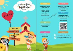 Op 26 en 27 februari is er weer een Vakantiebijbelclub! We gaan weer samen zingen, genieten van het toneel, knutselen en nog veel meer. Het thema dit jaar is: “Ik…