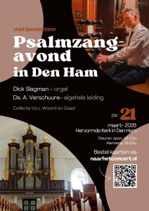 Hartelijk welkom op de psalmzangavond op zaterdag 21 maart 2026 in de Hervormde Kerk van Den Ham.